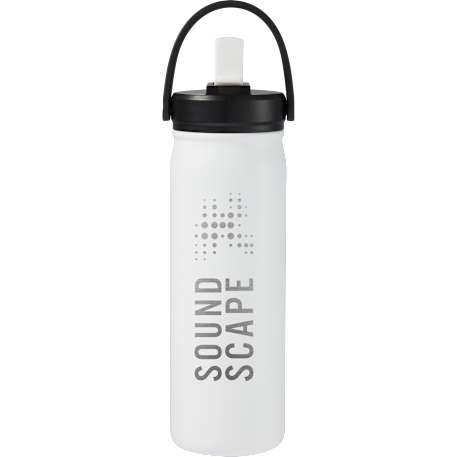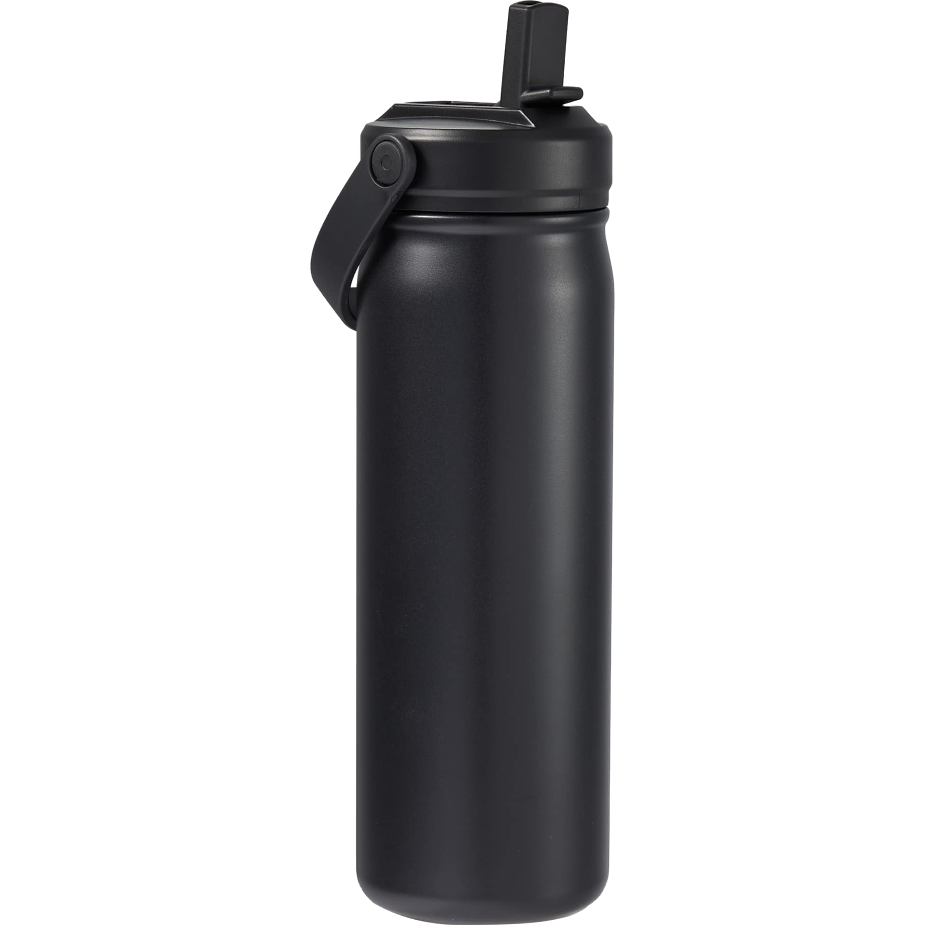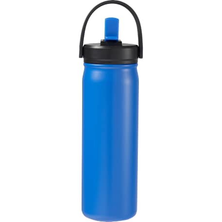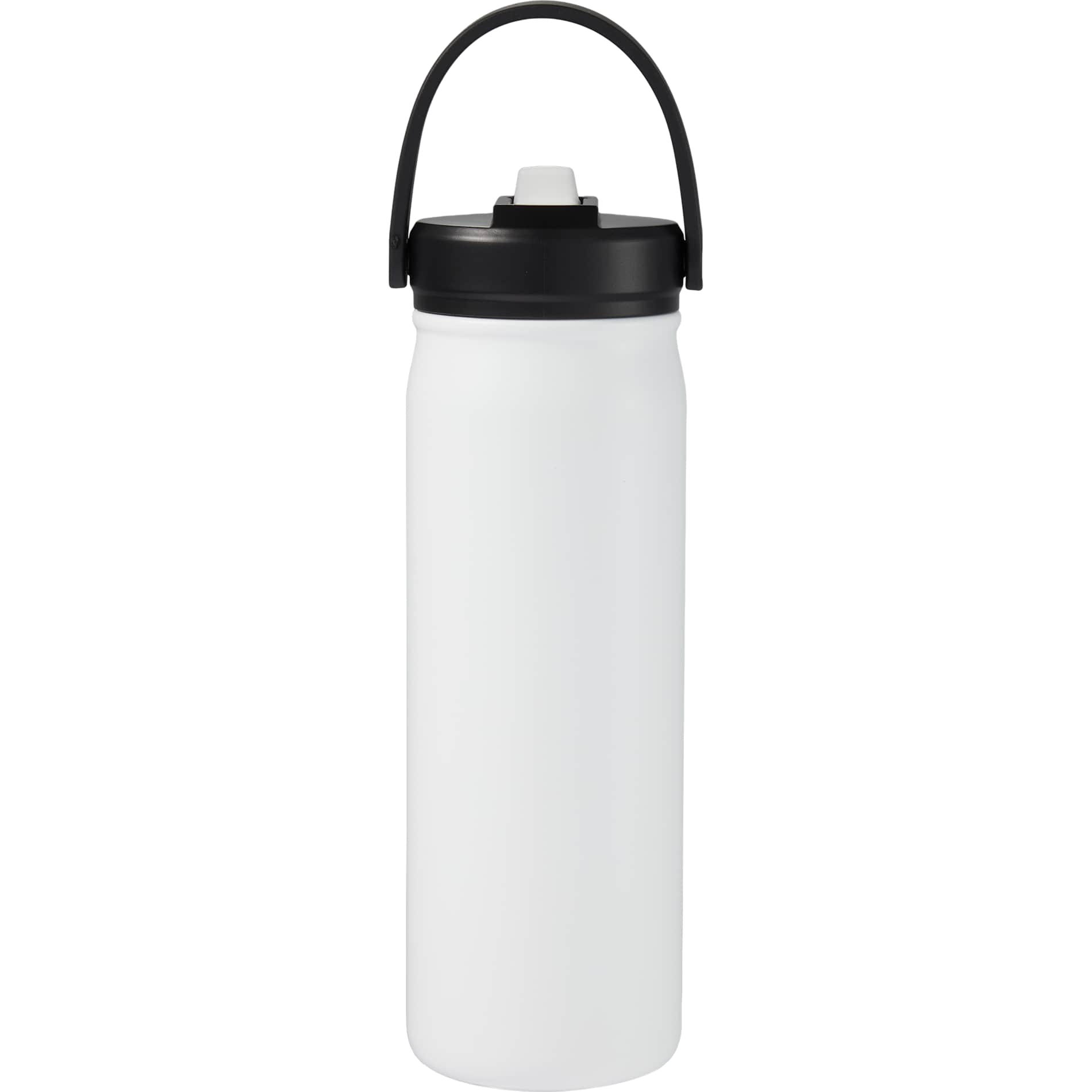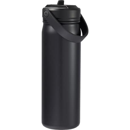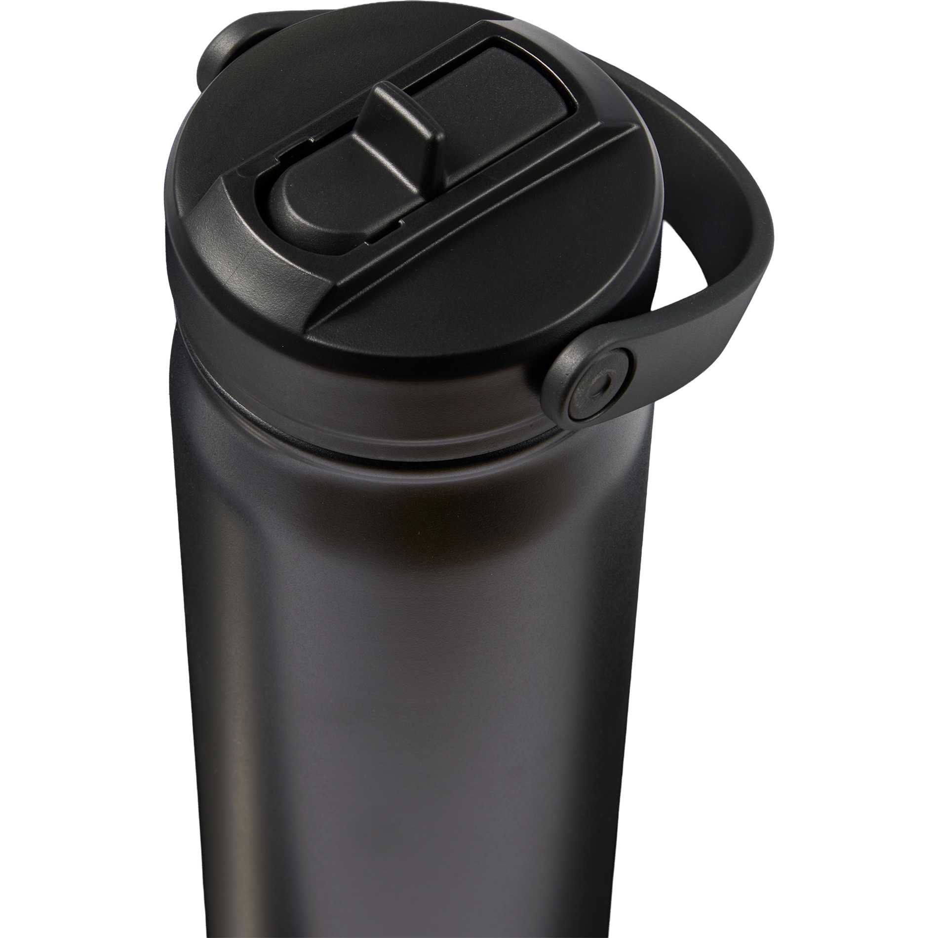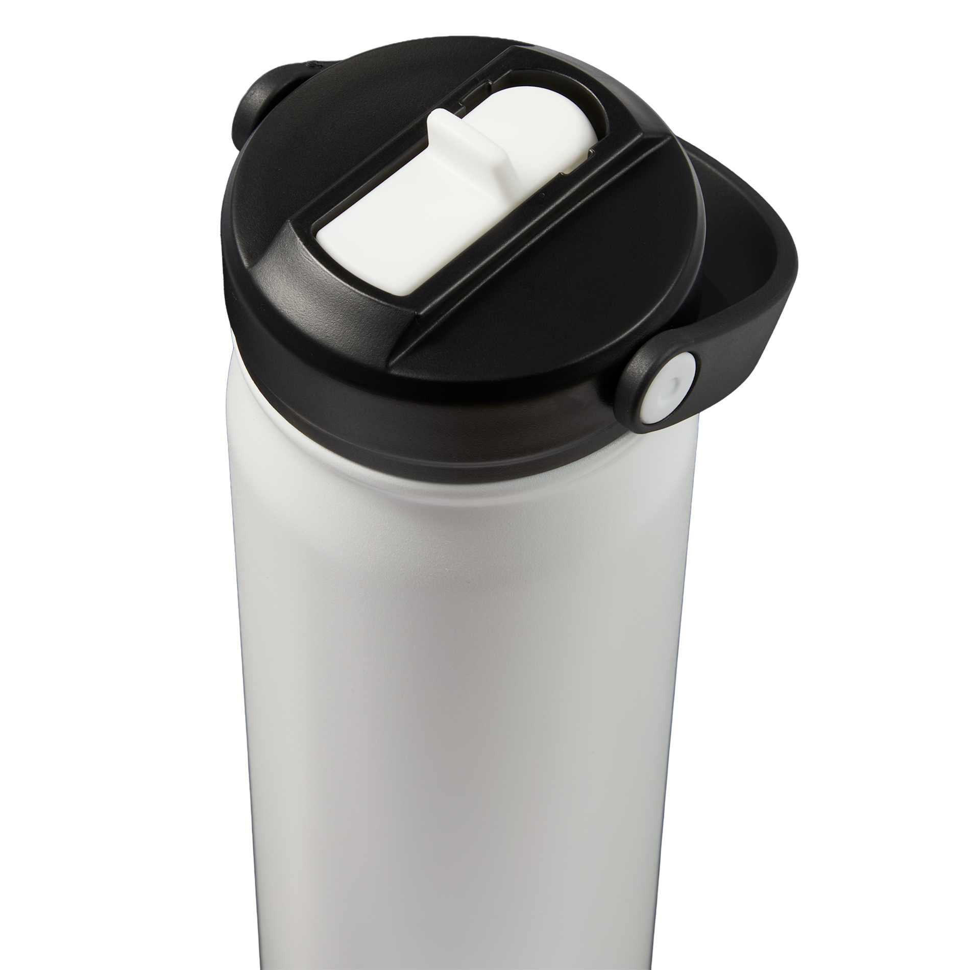 Durable, double-wall stainless steel vacuum insulated construction, which allows your beverage to stay cold for up to 15 hours. The construction also prevents condensation on the outside of the bottle. It is crafted from 91% recycled stainless steel liner and the standard stainless-steel outer. On-trend, durable matte coating. Screw-on, spill resistant lid with integrated easy drinking flip-straw and comfort soft-touch hand loop. Wide opening for comfortable filling and pouring. Perfect for ice cubes. Fits most standard car cup holders. Note: “This product can hold hot beverages, but drinking hot beverages with the straw is not recommended.” Remove lid to allow beverage to cool. Hand wash only 20oz.