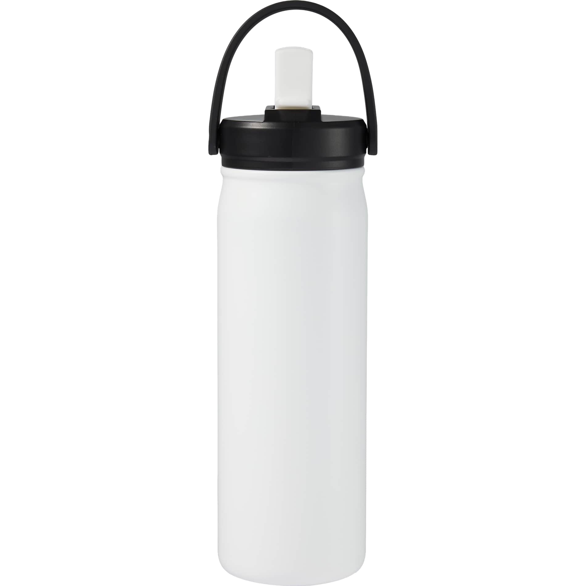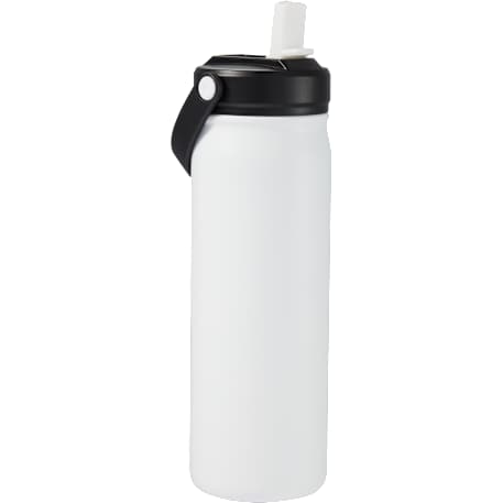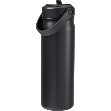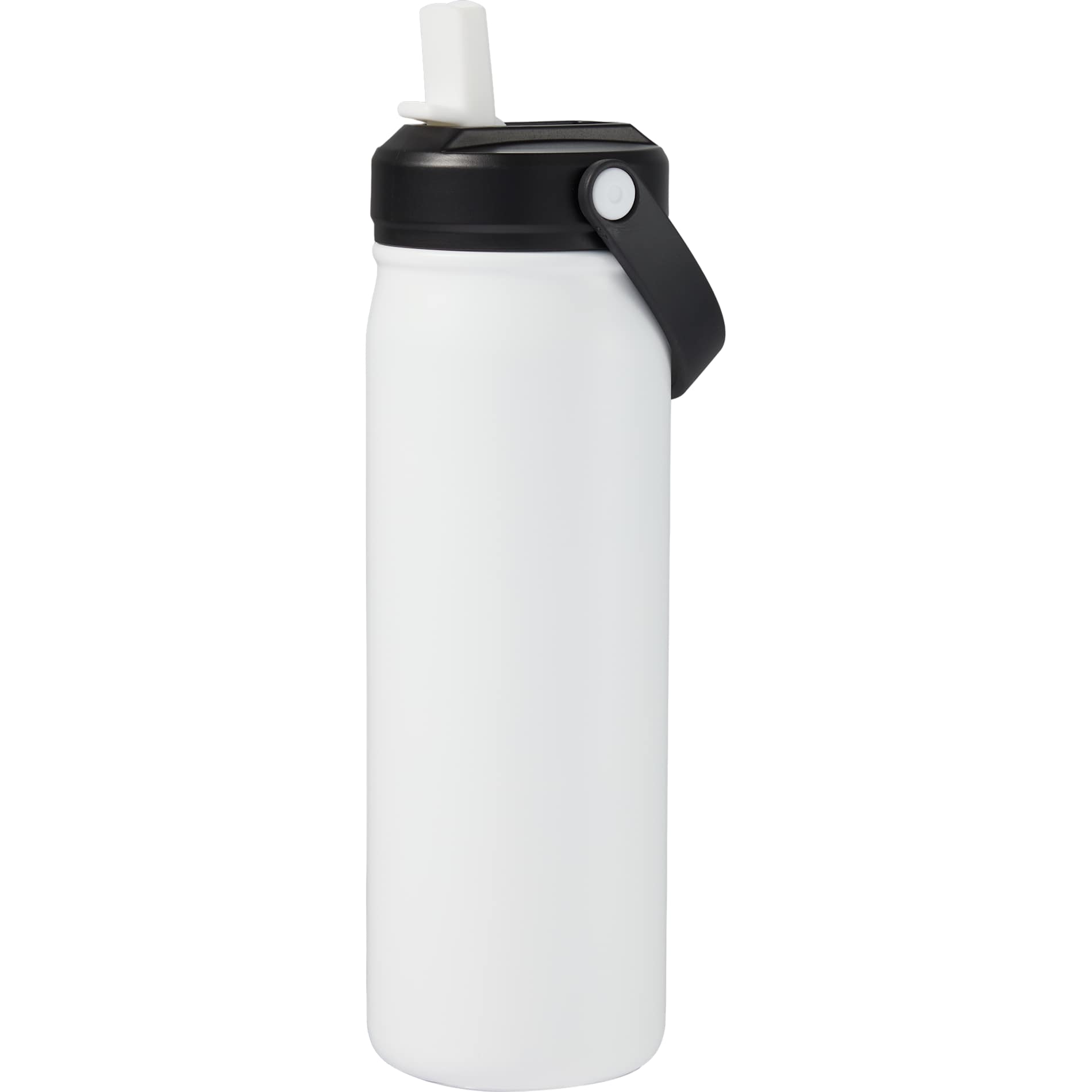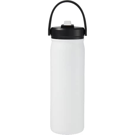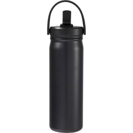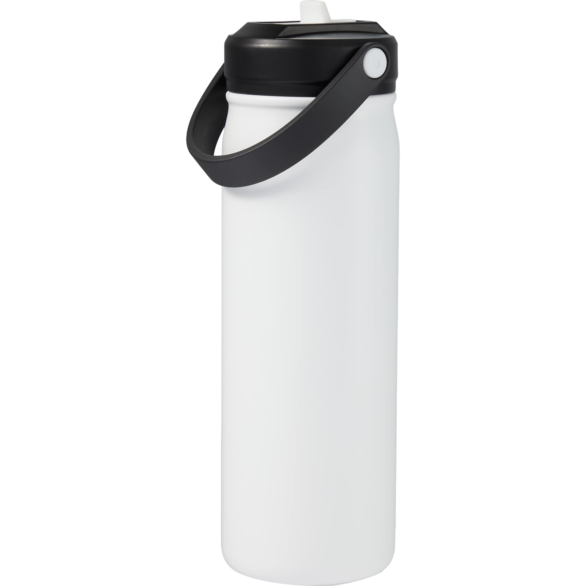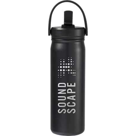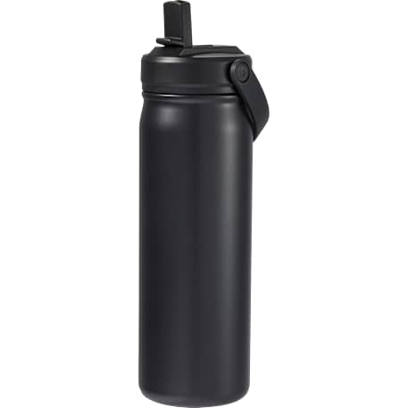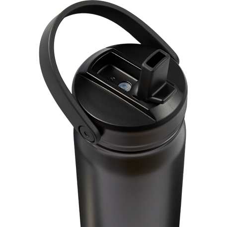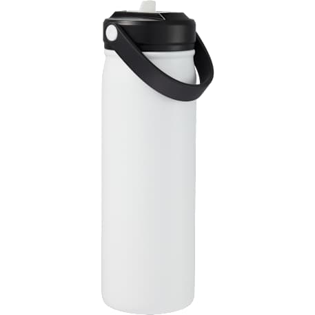 Durable, double-wall stainless steel vacuum insulated construction, which allows your beverage to stay cold for up to 15 hours. The construction also prevents condensation on the outside of the bottle. It is crafted from 91% recycled stainless steel liner and the standard stainless-steel outer. On-trend, durable matte coating. Screw-on, spill resistant lid with integrated easy drinking flip-straw and comfort soft-touch hand loop. Wide opening for comfortable filling and pouring. Perfect for ice cubes. Fits most standard car cup holders. Note: “This product can hold hot beverages, but drinking hot beverages with the straw is not recommended.” Remove lid to allow beverage to cool. Hand wash only 20oz.
