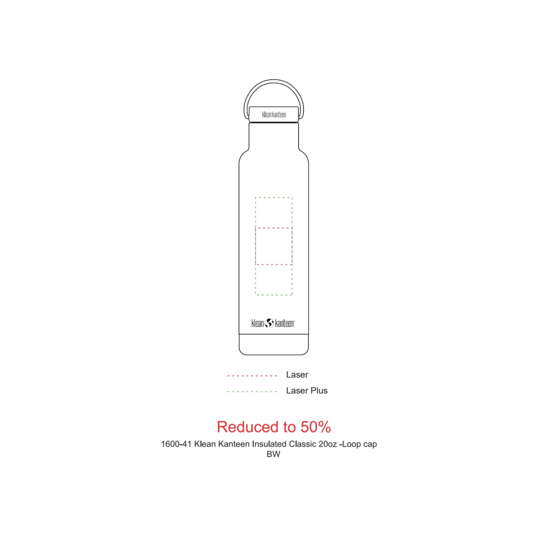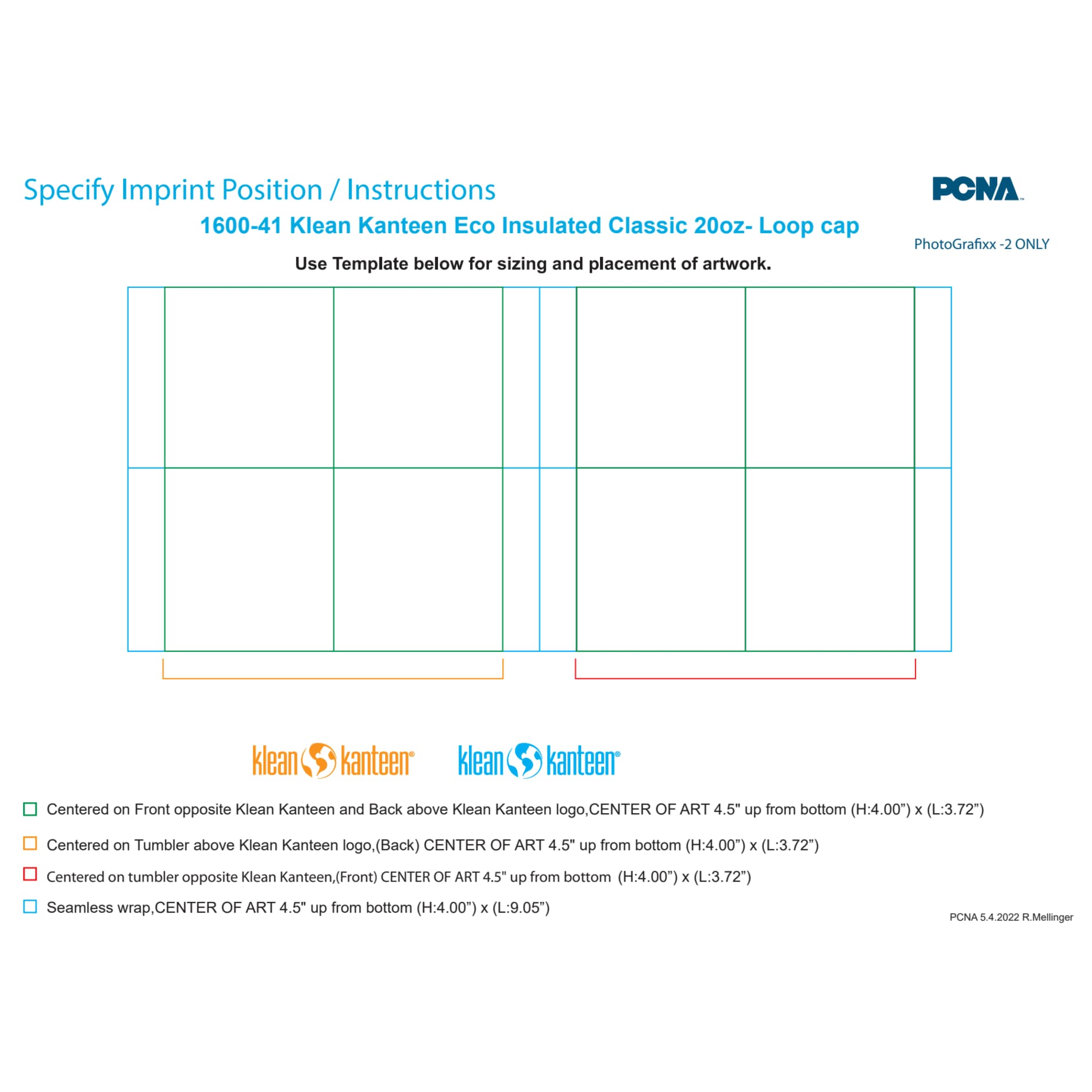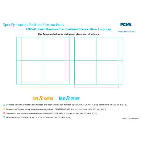 | Centered on Tumbler above Klean Kanteen logo, - CENTER OF ART 4. | Laser - Laser Plus | Charge Name:SETUP SINGLE COLOR Charge $55 |