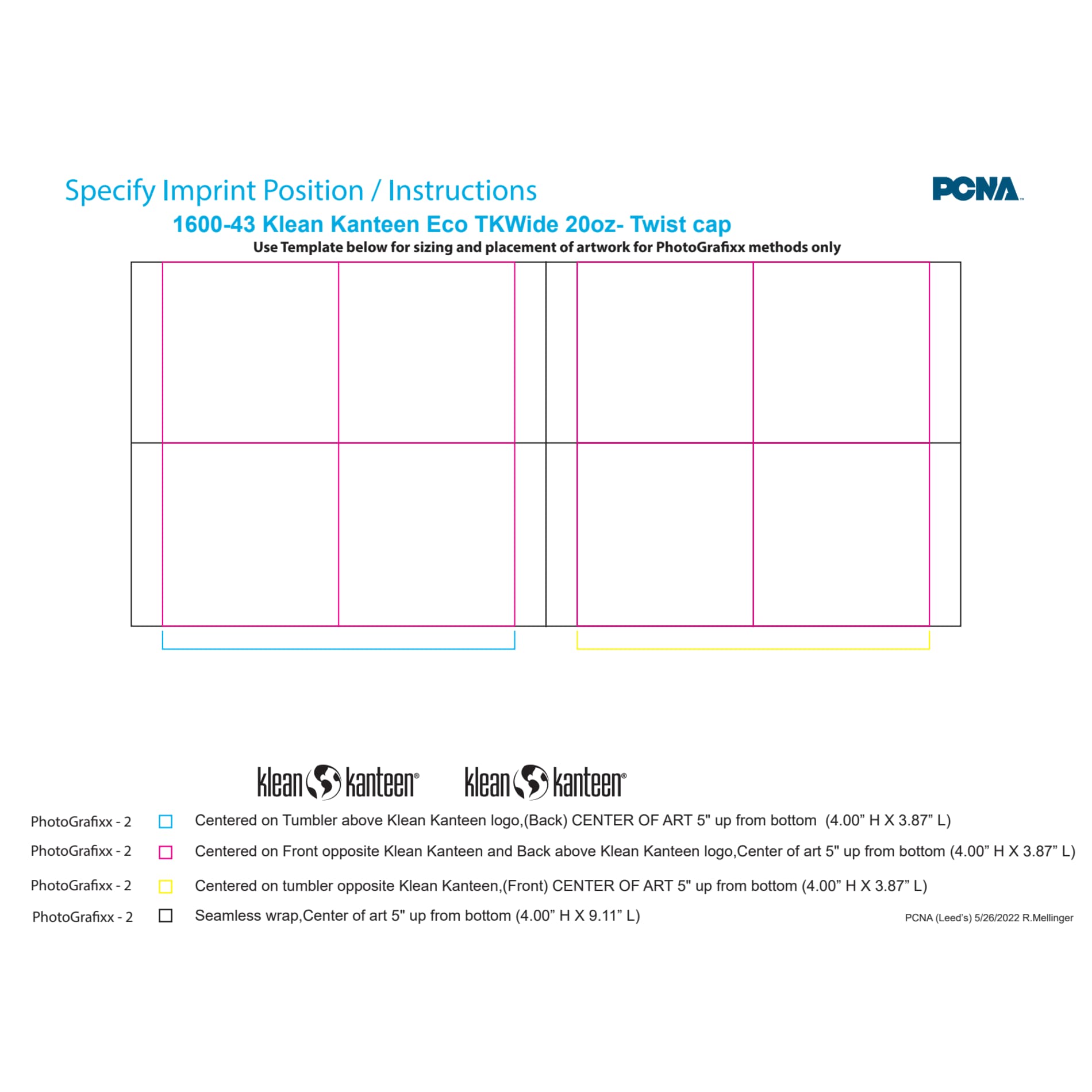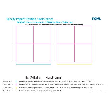 | Centered on tumbler opposite Klean Kanteen, - (Front) CENTER OF | Color Print SilkScreen - Drinkware | Charge Name:SETUP MULTI-COLOR Charge $95 |